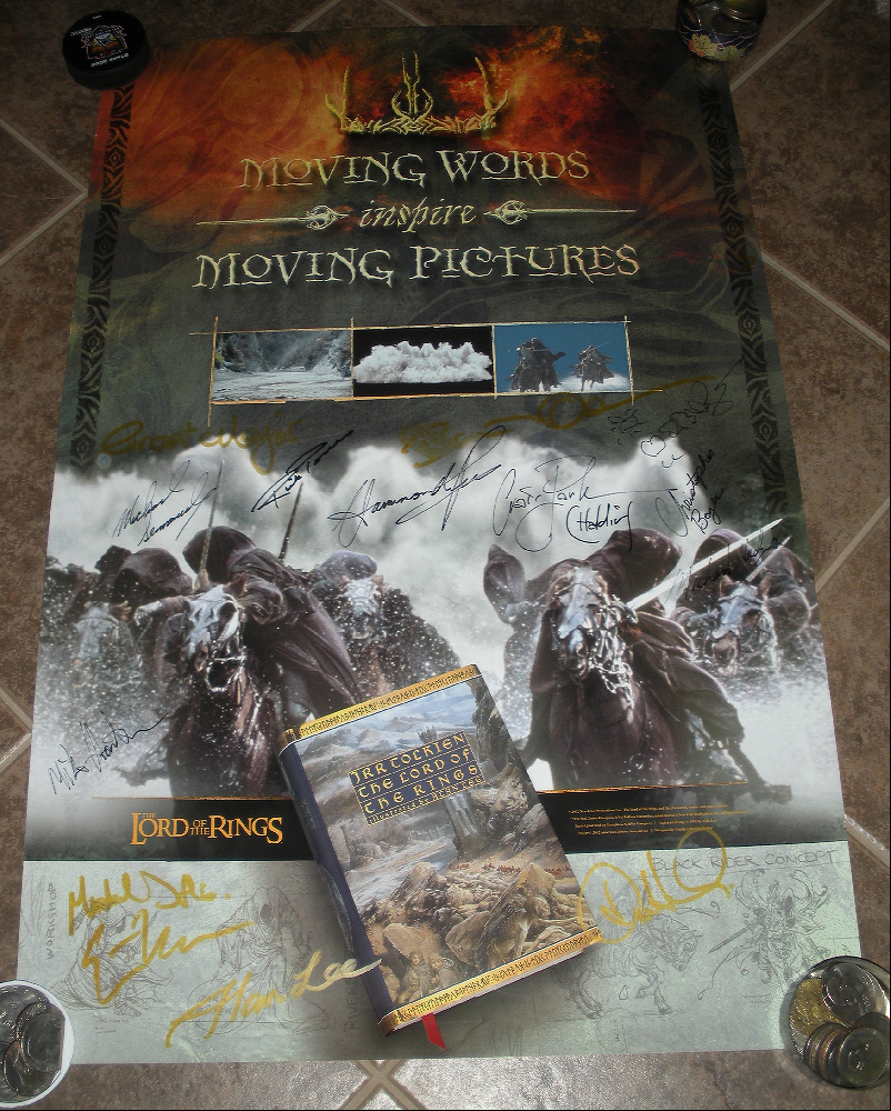 Signed American Library Association Moving Words Inspire Moving Pictures Poster. This was in the green room at the second TORN (The One Ring Net) Oscar party which was held at the Hollywood Athletic Club on March 23, 2003. The signers included Craig Parker, Bruce Hopkins, Dan Henneh, Grant Major, Alan Lee, Rick Porras, Christopher Boyes, and a few others I just can't make out. 22" x 34". For more images go to the photo gallery section of our web page and click on posters, lord of the rings About C9.