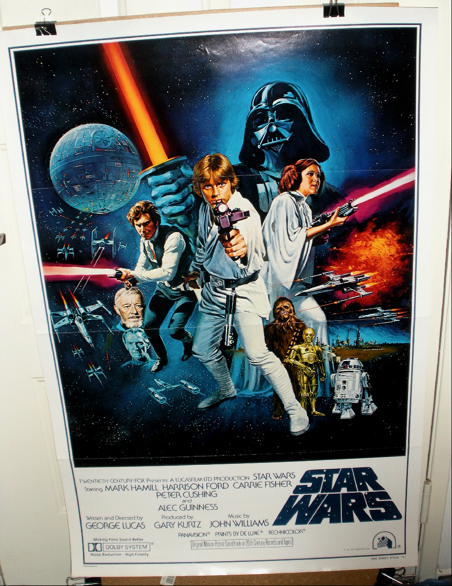 Star Wars Style C one sheet, tri fold, never folded vertically. Artwork by Tom Chantrll, per Sansweet and Vilmur, this poster was never intended for US distribution. Perhaps less than 500 were made and distributed. 27 x 41 1/32. A nice copy of another rare poster, a C9. For more photos of this and other Star Wars posters, please see the Posters section in our Photo Gallery.
