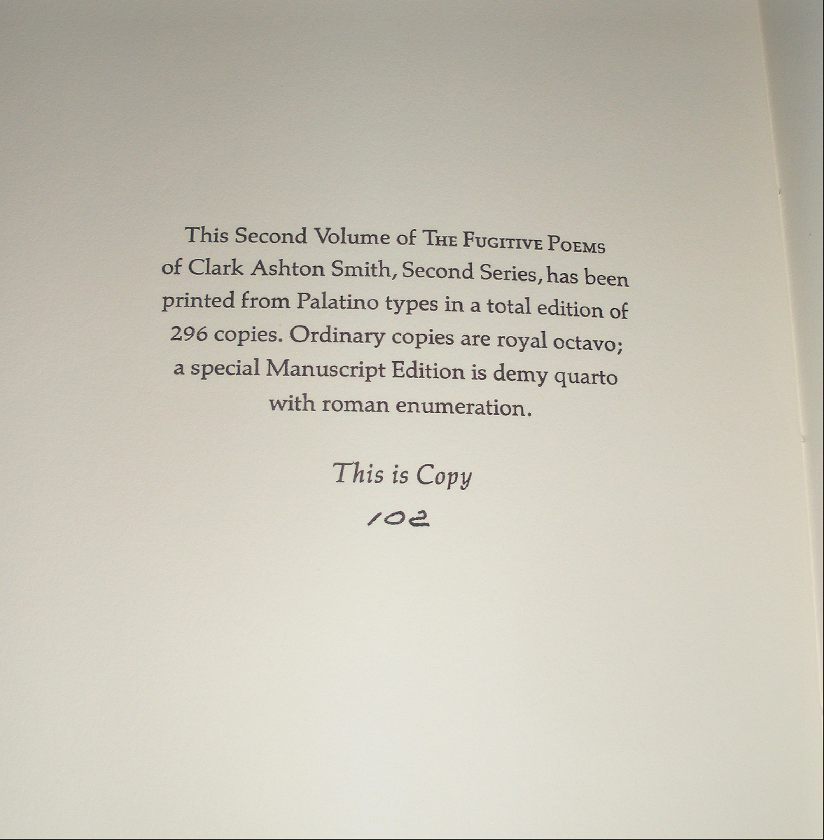 Richard Kuhn Xiccarph Edition. 1974. Chapbook. Near fine in a VG+ envelope. One of 320 numbered copies, this is #102. The Fugitive Poems, Second Series First Volume.